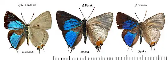 - Tajuria blanka de Nicéville, 1894: 39, pl.4, fig.4.
