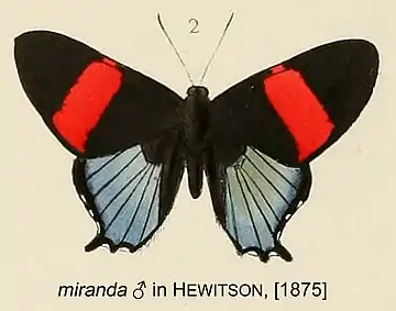 - Ancyluris miranda (Hewitson); Kirby, 1877: 756; Bridges, 1994: 304.
