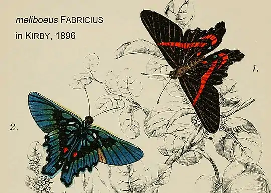 - Papilio meliboeus Fabricius, [1776]: 271; [1781]: 16; [1787]: 9; [1793]: 29.