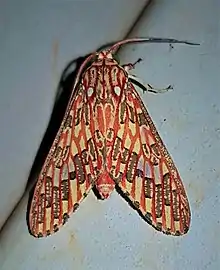 - de Toulgoët, H. 1987a: Description de nouvelles Arctiide d’Amérique latine, suivie de la liste des espèces les plus marquantes récoltées à la Guyane française en janvier-février 1986, (23e note), (Lepidoptera, Arctiidae) Nouvelle Revue d'Entomologie N.S. 4(3): 233–245. Reference page.
