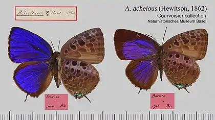 | For more multimedia, look at Arhopala achelous on Wikimedia Commons. |