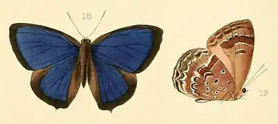 - Hewitson, W.C. 1863–1878. Illustrations of diurnal Lepidoptera, Lycaenidae. London, van Vorst, x + 229 pp, 107 pls. Text, plates. Reference page.