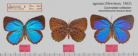 - Arhopala agesias (Hewitson) Seki et al, 1991: 56, Pl. 29 L158.