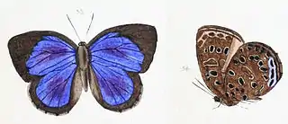 - Hewitson, W. C., 1862. Specimen of a Catalogue of Lycaenidae in the British Museum. London, British Museum. 15pp, 8 pls. BHL text, plates. Reference page.