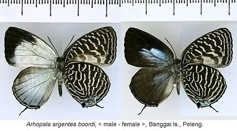 Arhopala argentea boordi Tennent & Rawlins, 2010.