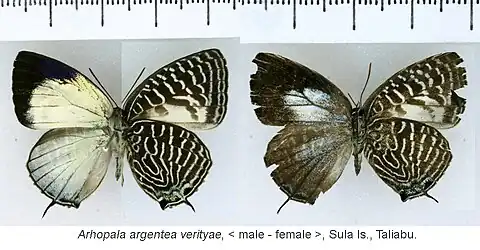 Arhopala argentea verityae Tennent & Rawlins, 2010.