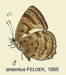 - Arhopala arsenius C. Felder & R. Felder, 1865, 2: 236, pl.29 fig. 15; Treadaway, 1995: 76.
