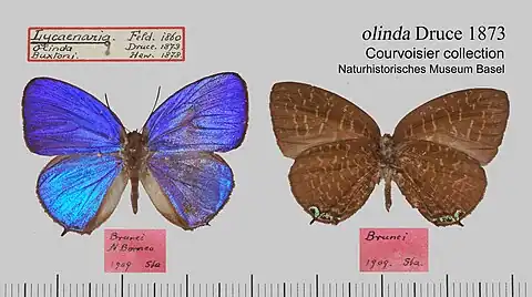 - Arhopala olinda (Druce); Druce, 1895: 591.