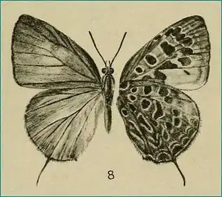 - Amblypodia dispar Riley & Godfrey, 1921: 183, pl.6 fig.8.
