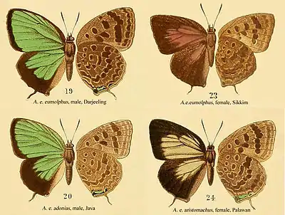 - Arhopala eumolphus eumolphus elis (form) Fruhstorfer, 1914: 122, Sikkim.