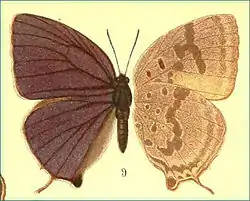 - Evans, W.H. 1957. A revision of the Arhopala group of oriental lycaenidae (Lepidoptera: Rhopalocera) Bulletin of the British Museum (Natural History), Entomology 5(3): 85–141. BHL Reference page.