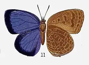 - Evans, W.H. 1957. A revision of the Arhopala group of oriental lycaenidae (Lepidoptera: Rhopalocera) Bulletin of the British Museum (Natural History), Entomology 5(3): 85–141. BHL Reference page.