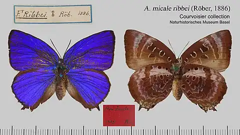 - Arhopala micale ribbei (Röber), D'Abrera, 1977: 313.