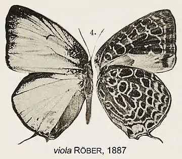 - Amblypodia viola Röber, 1887: 199, pl.9 fig.4; LT designated by Takanami, 1989: 51.