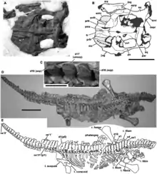 - Holotype: NHMUK 14550, the posterior portion of the skull, and a partial postcranial skeleton.