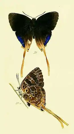 - Hewitson, W.C. 1863–1878. Illustrations of diurnal Lepidoptera, Lycaenidae. London, van Vorst, x + 229 pp, 107 pls. Text, plates. Reference page.
