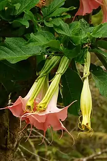 - Formula hybridae: Brugmansia suaveolens (Humb. & Bonpl. ex Willd.) Bercht. & J.Presl × Brugmansia versicolor Lagerh.