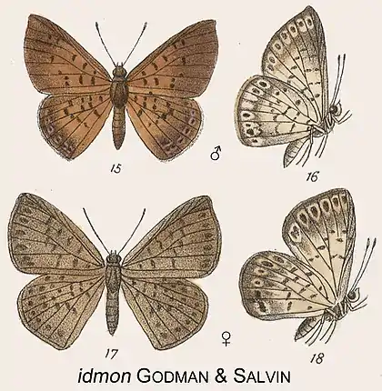 - Lemonias idmon Godman & Salvin, 1889: 357; 1901: 708, pl.110 figs 15-18.