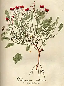 - Pelargonium × holosericeum (Sweet) Hoffmanns., Verz. Pfl.-Kult. 91. 1824.