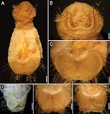Caulleryaspis nuda, A-C holotype, D-F paratypes.