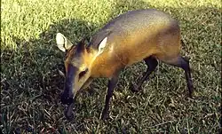 Wilson, Don E. & Reeder, DeeAnn M. (Editors) 2005. Mammal Species of the World – A Taxonomic and Geographic Reference. Third edition. ISBN 0-8018-8221-4. - IUCN: Cephalophus rufilatus Gray, 1846 (Near Threatened)