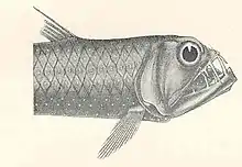 FMIB 45459 Head of Chauliodus pammelas, from the Laccadive Sea, 1370 fathoms; showing typical rapacious teeth