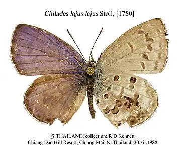 - Chilades lajus (Stoll); Vane-Wright & de Jong, 2003: 164.