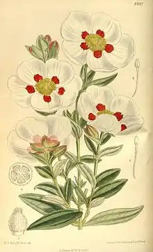 - Cistus × cyprius nothovar. angustifolius Willk., Icon. Descr. Pl. Nov. 2: 43, tab. 96 fig. B (1856).
