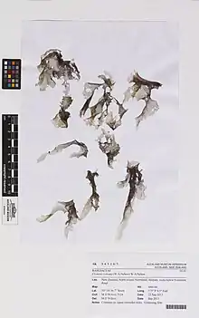Reference page. - Nelson, W.A., Broom, J.E., Farr, T.J. 2001. Four new species of Porphyra (Bangiales, Rhodophyta) from the New Zealand region described using traditional characters and 18S rDNA sequence data. Cryptogamie algologie, 22(3): . DOI: 10.1016/S0181-1568(01)01060-1 Reference page.
