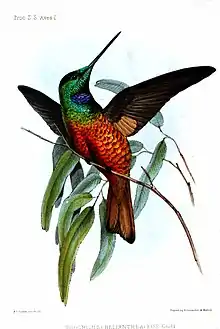 - Gould, J. 1848. Drafts for a new arrangement of the Trochilidae (continued from Pt.15). Proceedings of the Zoological Society of London Pt. 16 no.180: 11–14 BHL Reference page. p. 11 pl. 1