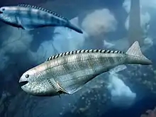 Blom, Henning, 2008; "A new anaspid fish from the middle Silurian Cowie Harbour fish bed of Stonehaven, Scotland" Journal of Vertebrate Paleontology 28(3):594–600