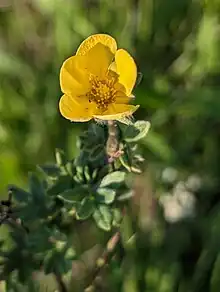 Dasiphora fruticosa subsp. fruticosa, Low Force, Teesdale, England (type locality)