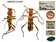 - Tavakilian, G. & Chevillotte, H. 2018. TITAN: Cerambycidae database (version Dec. 2018). In: Roskov Y., Ower G., Orrell T., Nicolson D., Bailly N., Kirk P.M., Bourgoin T., DeWalt R.E., Decock W., Nieukerken E. van, Zarucchi J. & Penev L., eds. 2018. Species 2000 & ITIS Catalogue of Life, 29th November 2018. Digital resource at www.catalogueoflife.org/col. Species 2000: Naturalis, Leiden, the Netherlands. ISSN 2405-8858. Reference page. [accessed on December 29, 2018]