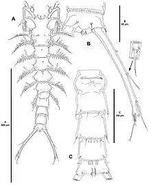 - Holotype: female: body partially dissected (leaving cephalothorax, left antennule and antenna, left P1-P5, abdomen, anal somite and caudal rami intact) and preserved in alcohol (ICML-EMUCOP-100207-02), pair of mandibles, maxillules, maxillae and maxillipeds, and right P1-P5 dissected and mounted on four slides (ICML-EMUCOP-100207-03).