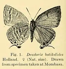 - Deudorix (Virachola) batikelides (Holland); Williams, 2007: Deudoricina 38.