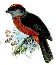 - Robbins, M.B., Rosenberg, G.H. & Sornoza Molina, F.. 1994. A new species of cotinga (Cotingidae: Doliornis) from the Ecuadorian Andes, with comments on plumage sequences in Doliornis and Ampelion. The Auk, 111(1): 1–7. PDFReference page.