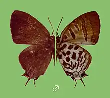 - Hayashi, Hisakazu, 1984: New Synonyms, New Status, New Combinations, New Species and New Subspecies of Butterflies from the Philippines and Indonesia (Lepidoptrea: Satyridae, Riodinidae, Lycaenidae). IWASE. 2: 9–28.