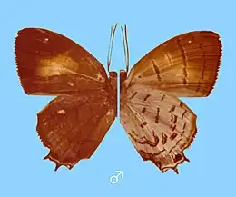 - Hayashi, Hisakazu, 1984: New Synonyms, New Status, New Combinations, New Species and New Subspecies of Butterflies from the Philippines and Indonesia (Lepidoptera: Satyridae, Riodinidae, Lycaenidae). IWASE. 2: 9–28.