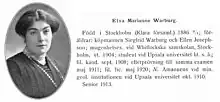 Elsa Marianne Warburg (April 9, 1886 – March 30, 1953), Swedish palaeontologist.