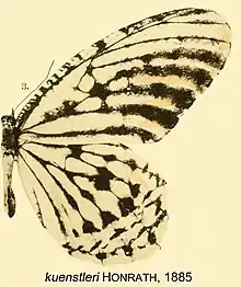 - Elymnias künstleri Honrath, 1885: 276, pl.8 fig.3; Distant, 1886: 422, pl.41 fig.9.