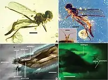 - Grimaldi, D.A. & Barden, P. 2016. The Mesozoic family Eremochaetidae (Diptera: Brachycera) in Burmese amber and relationships of Archisargoidea: Brachycera in Cretaceous amber, part VIII. American Museum Novitates 3865: 1–29. DOI: 10.1206/3865.1