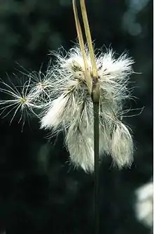 English: thinleaf cottonsedge, Green-keeled cottongrass, Tassel cottongrass, Thinleaf cottongrass