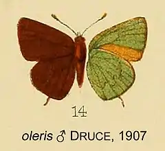 - Thecla oleris Druce, 1907: 614, pl.36, fig.14, S. Paraguay, ♂ BMNH, images.