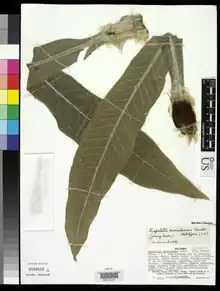 - Type: J. Cuatrecasas & L. Rodríguez 27790 (in flower, 15 September 1969; Holotype: US {US00132102 (2580872 A)(GBIF, JSTOR, speciesLink), US00132103 (2580873 A)(CRIA, GBIF, JSTOR), US00132104 (2580874 A)(CRIA, GBIF, JSTOR), US00132105 (2580866 A)(CRIA, GBIF, JSTOR), US00132106 (2580871 A)(GBIF, JSTOR, speciesLink), US00132107 (2580870 A)(GBIF, JSTOR, speciesLink), US00132108 (2580868 A)(CRIA, GBIF, JSTOR), US00132109 (2580865 A)(GBIF, JSTOR, speciesLink)}; Isotypes: COL [seen by Diazgranados], F {V0361396F (2319128)(CRIA, GBIF, JSTOR), V0415918F (2319060)(CRIA, GBIF), V0415919F (2319059)(CRIA, GBIF), V0415920F (2319058)(CRIA, GBIF), V0415921F (2319055)(CRIA, GBIF), V0415922F (2319061)(CRIA, GBIF)}, L {U 0180943(CRIA, GBIF, JSTOR), U 0180494(CRIA, GBIF, JSTOR), U 0180945(CRIA, GBIF, JSTOR)}, US {US00927315 (2580864 A)(GBIF, speciesLink), US00927316 (2580867 A)(GBIF, speciesLink), US00927317 (2580869 A)(GBIF, speciesLink)}).