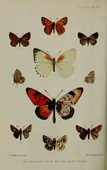 - Butler, A. G., 1899. On two small collections of butterflies made by Mr. Richard Crawshay during 1898 in British East Africa. Proceedings of the Zoological Society of London 1899: 417–427, BHL. Reference page.
