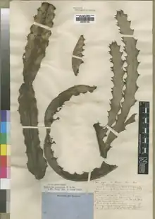 - Note: authors such as Hiern (1900: 946) and Carter (1985) did not admit validity of publication of this name in 1855 and it was placed under Euphorbia conspicua by Govaerts, Frodin & Radcliffe-Smith (2000). This treatment was refuted by Bruyns & Berry (2019).