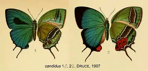 Evenus candidus (Druce, 1907).