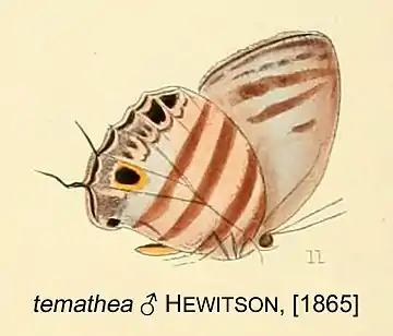 - Thecla temathea Hewitson, 1865: 74, pl.29, fig.11.