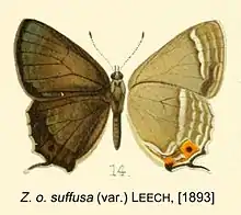 - Zephyrus orientalis suffusa (var.) Leech, [1893]: 377, pl.27 fig 14.