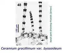 - Cho, T.O., Boo, S.M., Hommersand, M.H., Maggs, C.A., McIvor, L. & Fredericq, S. 2008. Gayliella gen. nov. in the tribe Ceramieae (Ceramiaceae, Rhodophyta) based on molecular and morphological evidence. Journal of Phycology 44(3): 721–738, 11 figs. DOI: 10.1111/j.1529-8817.2008.00505.x Reference page. : 726, figs 3a–e